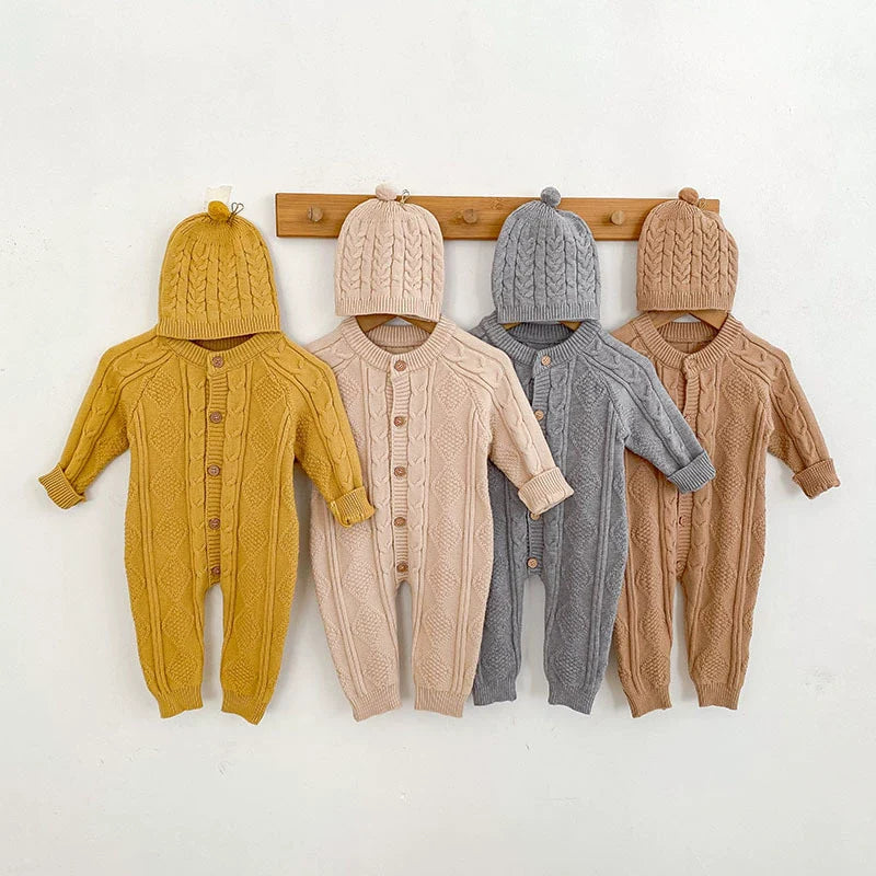 Get your little one ready for cozy autumn days with this playful unisex romper! Featuring a charming geometric jacquard pattern in solid colors, this knitted romper keeps babies snug and stylish. Perfect for layering or wearing alone, it’s soft, comfy, and designed to make every moment extra adorable.