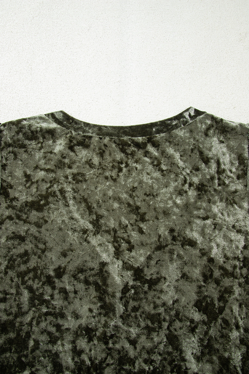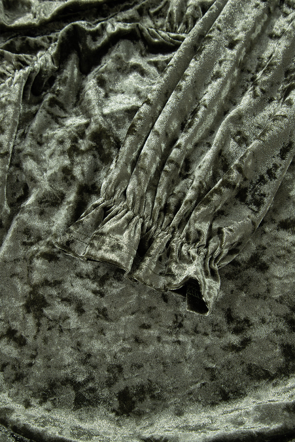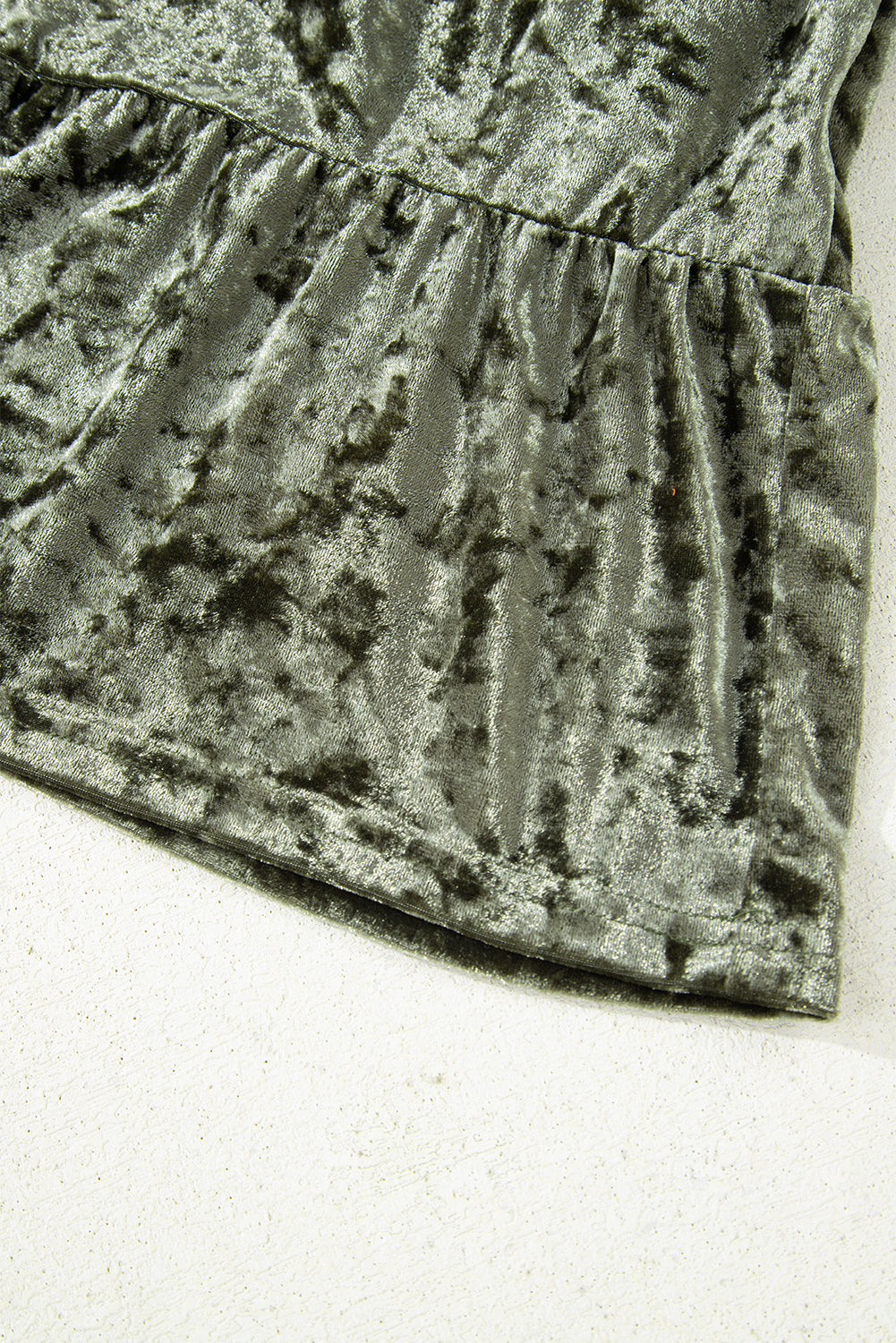 Jungle Green Plus Size Velvet Babydoll Mini Dress with Puff Sleeve