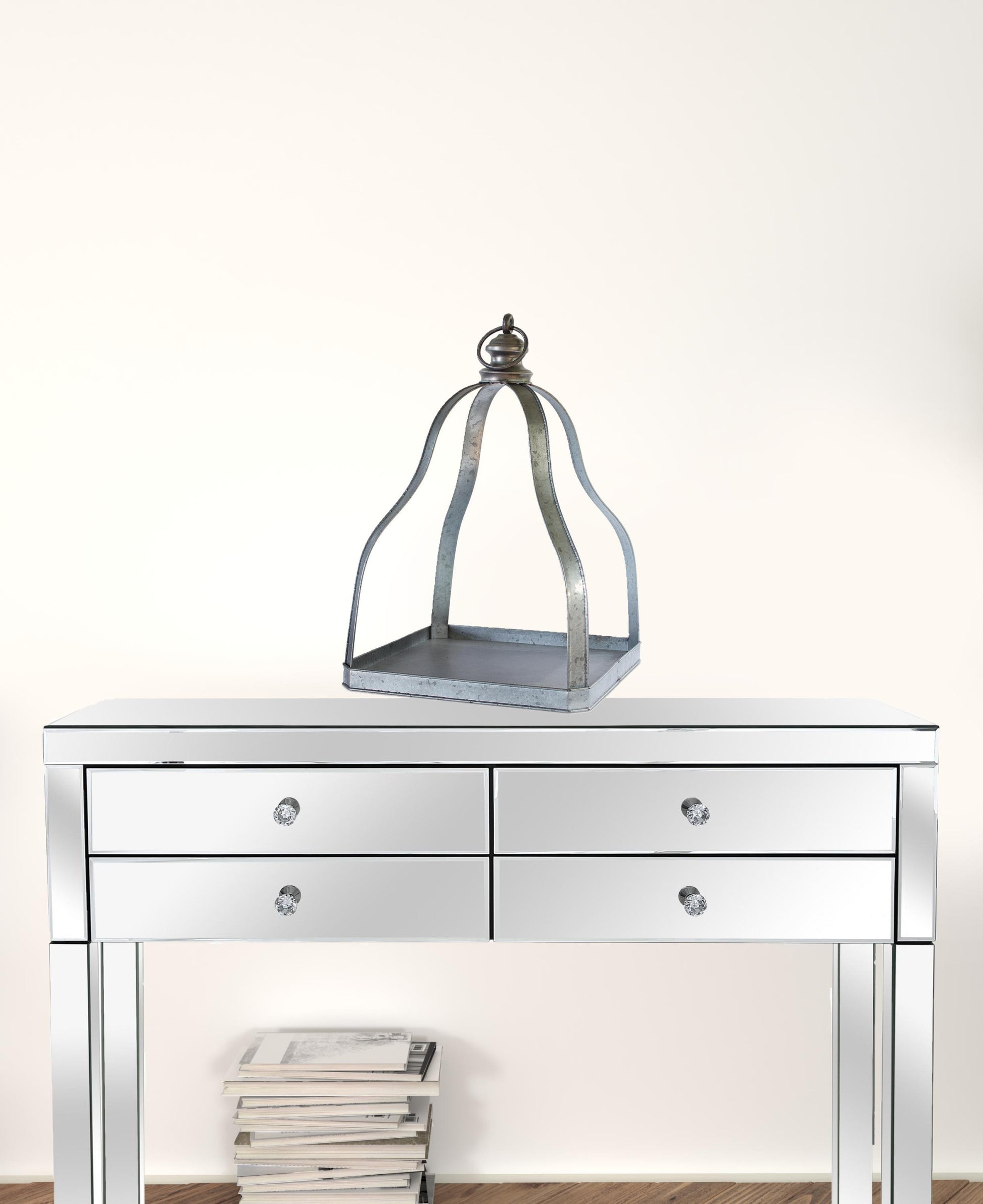 Stylize your tabletop, light up your back patio or add the perfect touch of low light to your living room with this set of two gray distressed galvanized metal tabletop lantern candle holders. Crafted from durable galvanized metal, these industrial-style candleholders feature a purposeful coat/paint distressing that enhances their charm. Ideal for votive, tealight, or pillar candles, they offer versatility in creating a warm ambiance. Standing at an impressive height, this set of two is perfect for elevating any space with ease. Add these stunning lanterns to your décor and enjoy their timeless appeal. 20-inch h x 14-inch w x 14-inch d.